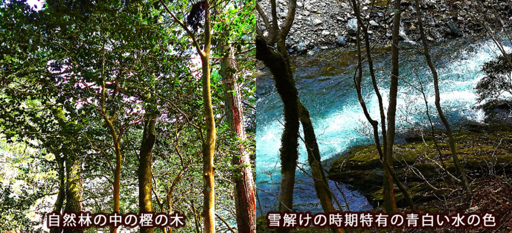 またガイドの岡さんは由良川本流(美山川)の青白い水の色を、この時期にしか見られない雪解けの春の色と話していました。自然の中では水にも季節の色があるのですね。